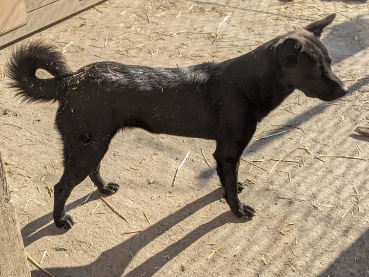 Taka ist die offenste von unseren Blackys, so hatten wir am Anfang das Geschwister-Trio genannt. Die junge Hündin durchstreift ab und zu gerne mal alleine, ohne Bruder oder Schwester, das Gelände des ARA-Shelters und zeigt sich dabei sehr verträglich mit ihren Artgenossen. Auch für die eine oder andere spielerische Rauferei mit ihrem Bruder ist sie gern zu haben.