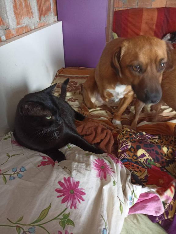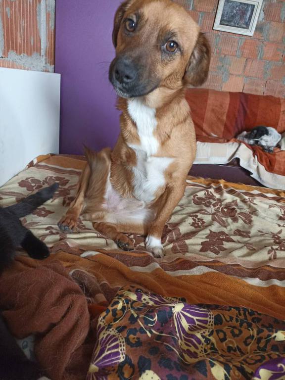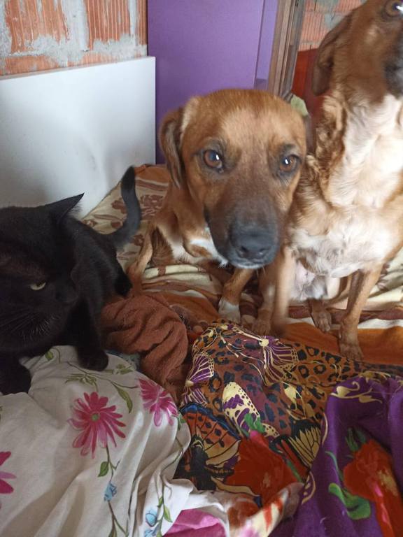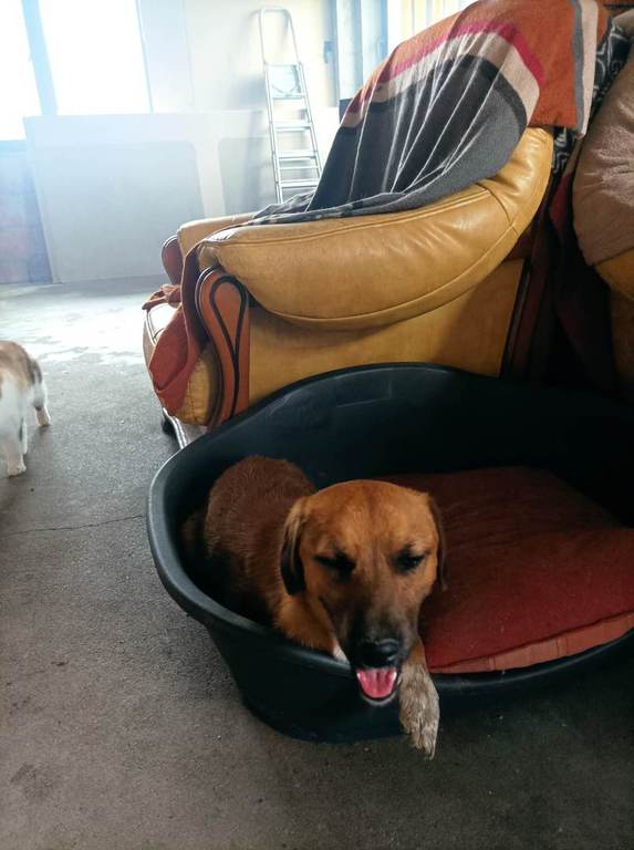 Ihr fiel sofort auf, dass mit dem kleinen Schatz etwas nicht stimmte. Joy kam mit einer Behinderung auf die Welt. Sein rechtes Vorderbein ist verkürzt, unvollständig entwickelt. Dennoch zeigt er sich im Shelter als ganz normaler Jungrüde, er ist aufgeweckt und verspielt. Mit Artgenossen kommt er gut klar, uns Menschen mag er ebenso sehr, auch wenn er ihnen anfangs manchmal noch etwas schüchtern begegnet. Momentan lebt Joy bei Mariana mit im Haus und verhält sich auch Katzen gegenüber freundlich.