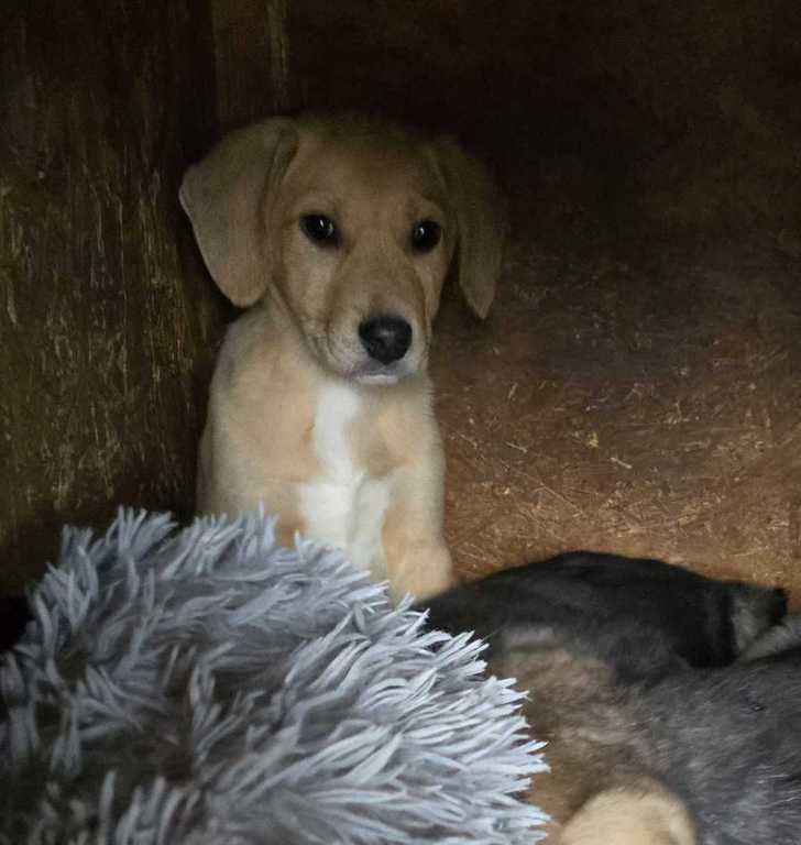 Die Mutterhündin hatte ein Loch gegraben, um ihren Welpen einen schützenden Raum zu geben.